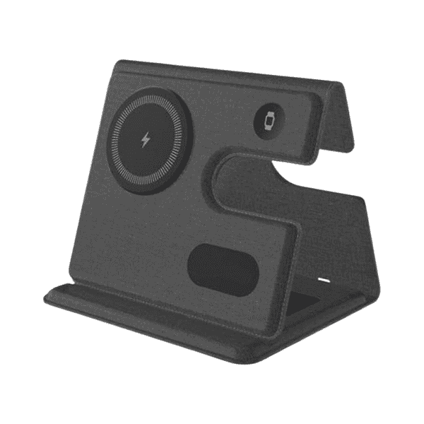3-in-1 Magnetic Wireless Charging Station for Mobile, Apple Watch & Earbuds. Made from recycled PU and ABS. Size: 15.1 × 12.5 × 2.3 cm