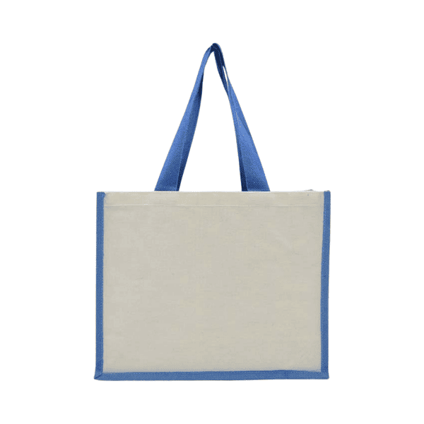 Eco-friendly jute canvas tote bag combining the strength of canvas with the natural appeal of jute fibers. Durable, reusable, and versatile for daily use. Size: 41 × 33 × 15 cm.