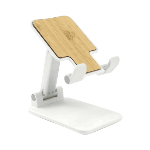 Santo Foldable Bamboo and ABS Phone Stand, the ideal corporate gift in UAE. This promotional item offers a perfect blend of functionality and sustainability, crafted from ABS plastic and bamboo materials. It’s designed to cater to convenience, featuring a foldable structure for effortless storage, an adjustable height, and bracket for preferred viewing angles. The non-slip base ensures stability on any surface. What makes this stand unique is the bamboo plate, allowing for customized logo imprinting, enhancing brand visibility. Versatile and practical, this adjustable phone stand is the perfect promotional gift for corporate events, providing a highly usable and branded accessory for clients and staff.