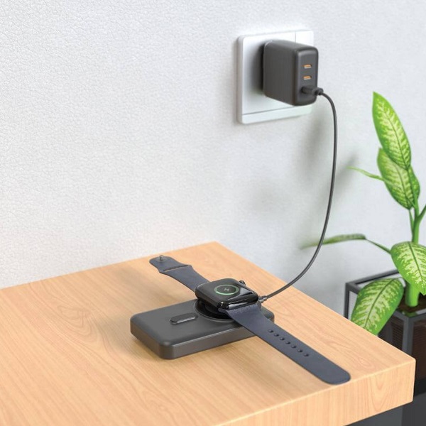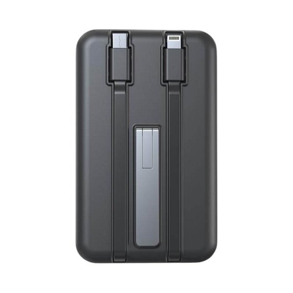 10,000mAh magnetic wireless powerbank with built-in Type-C and Lightning cables. Supports 15W wireless phone charging and 2.5W Watch charging.