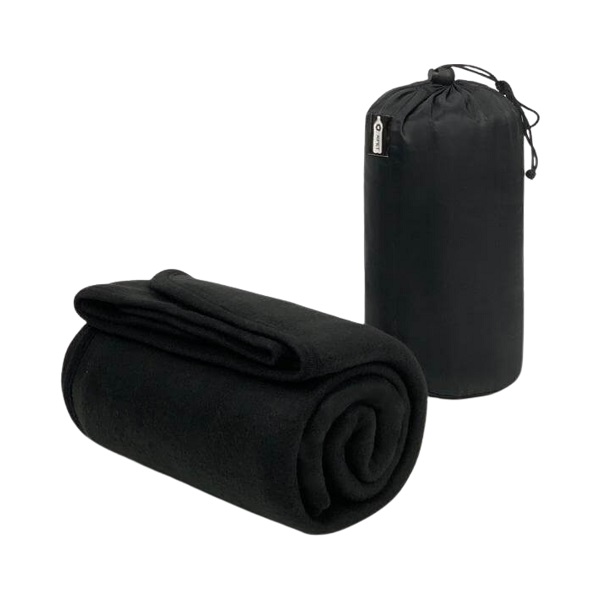 Soft 180gsm polar fleece travel blanket (90x155cm) that comes neatly packed in a pouch made from eco-friendly RPET material.