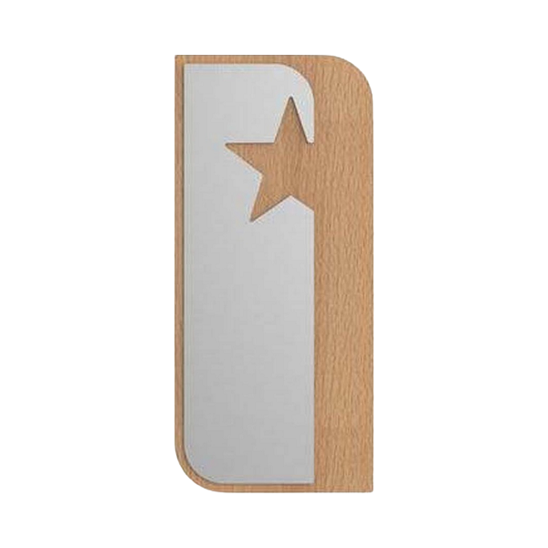 Eco award crafted from FSC beech wood and recycled aluminum cans. Size: 10 × 2.9 × 22 cm.