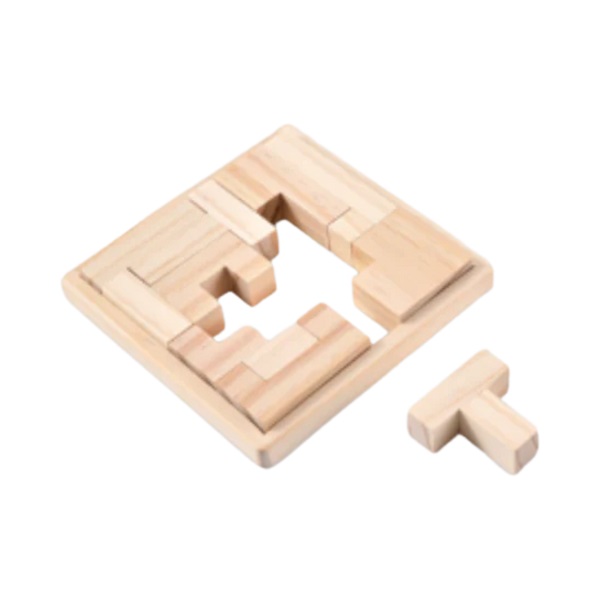 Traditional pine wood puzzle board. Size: 12 × 12 × 1.7 cm.