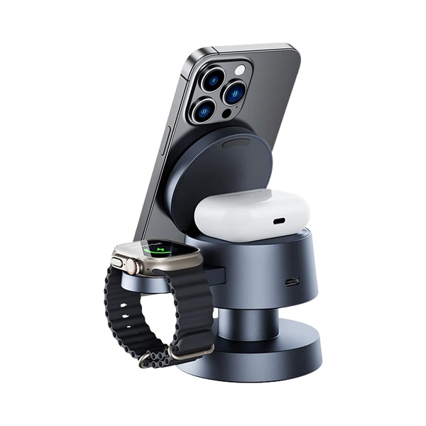 Elevate your nightstand with the PLUGLEY Neo 4-in-1 MagSafe Wireless Charger. Featuring 15W fast charging, an integrated LED lamp, and a detachable watch dongle, this foldable station offers versatile, stylish power for your essential devices.