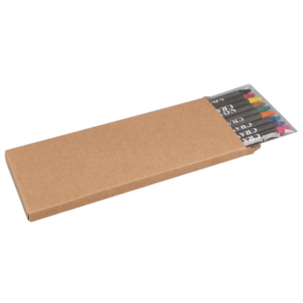 Set of 10 coloring pencils and 9 crayons packed in a kraft box. Size: 18.5 × 8.0 × 0.5 cm.