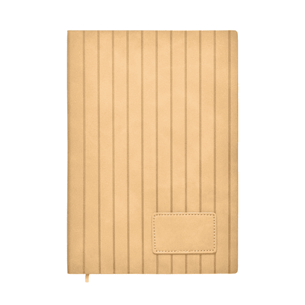 A5 notebook with soft smokey PU ribbed cover (40% recycled post-consumer, 60% PU) and plain PU patch. 160 lined pages (80 sheets/70 gsm) with matching colour polyester ribbon page marker.