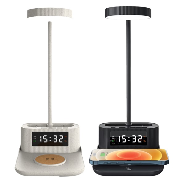 The Spegos 15W Wireless Charger with Lamp, Pen Holder, and Clock combines elegance with functionality. This foldable wireless charging station offers three adjustable light colors, a pen holder, and a sleek clock, all crafted with eco-friendly wheat and cork materials. Perfect as a eco-friendly corporate gift, it’s the ideal accessory for any modern workspace.